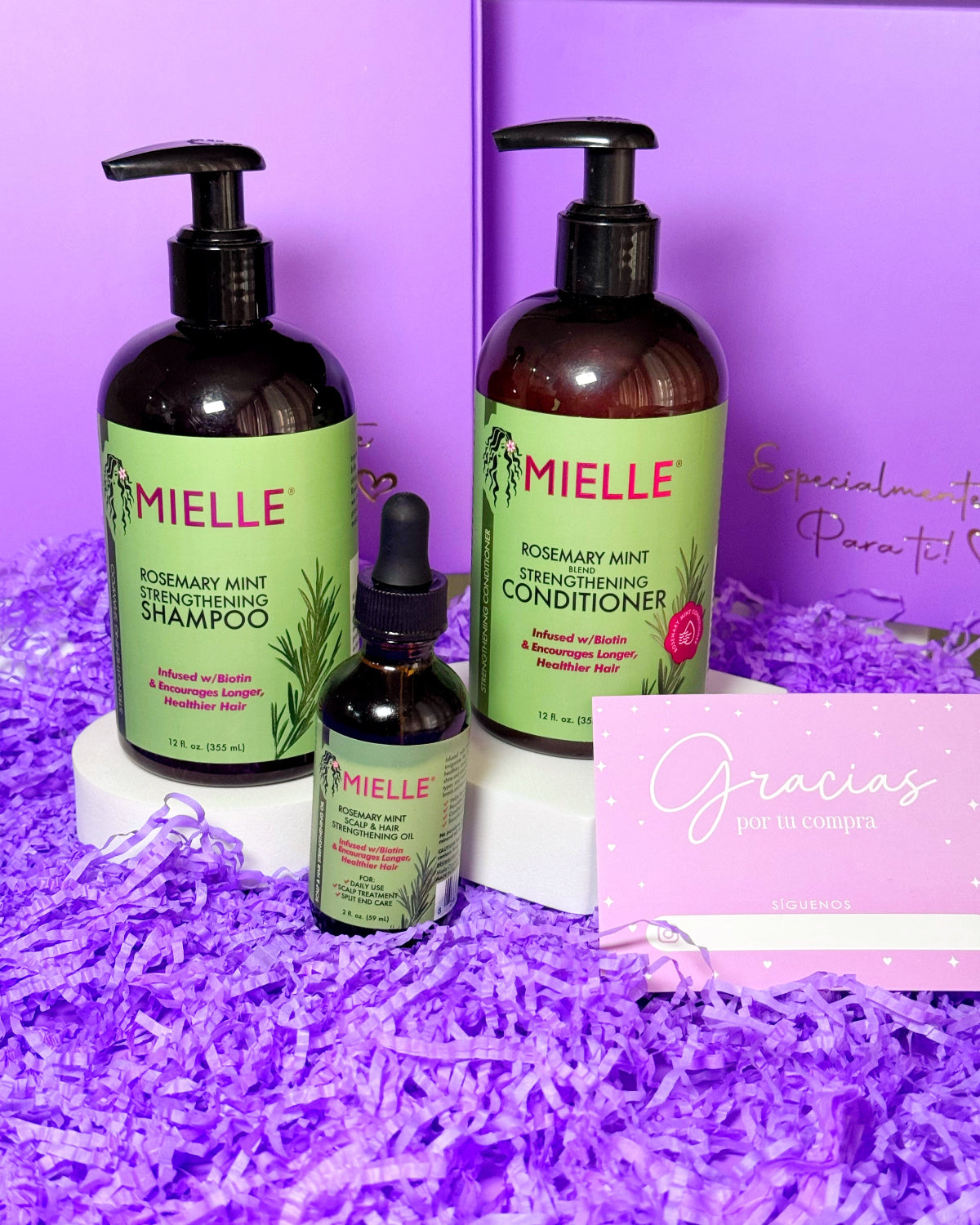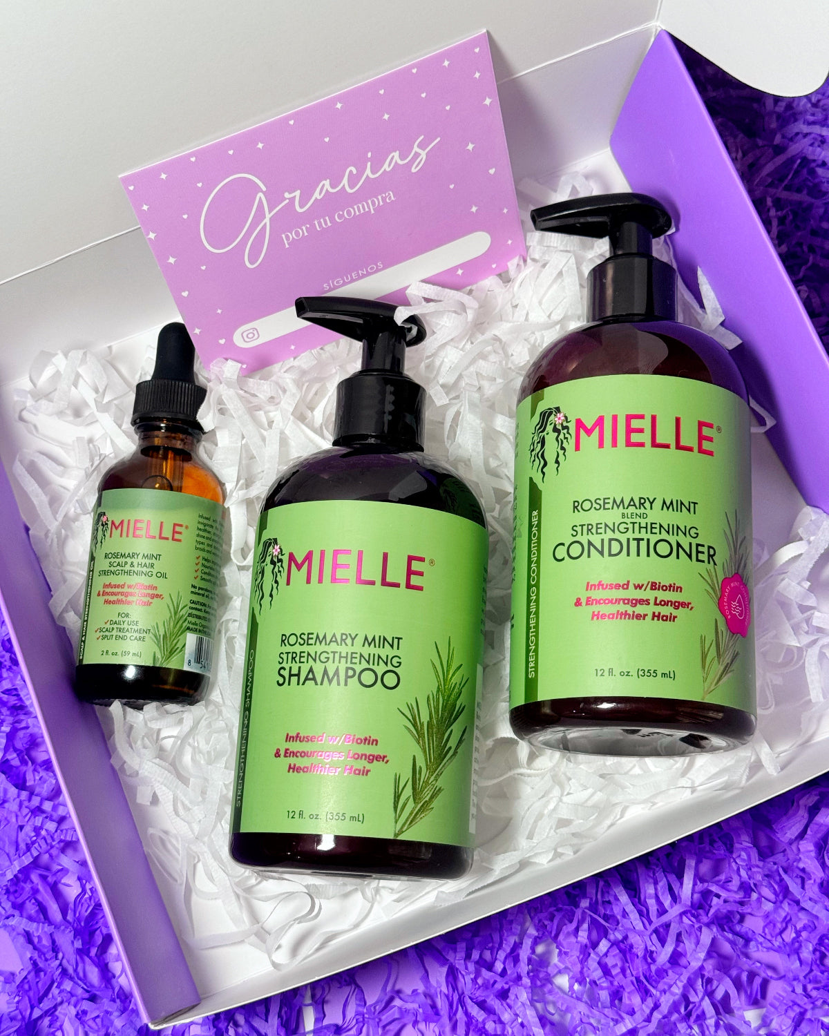 - Acondicionador 12 oz – Hidrata, suaviza y fortalece el cabello.