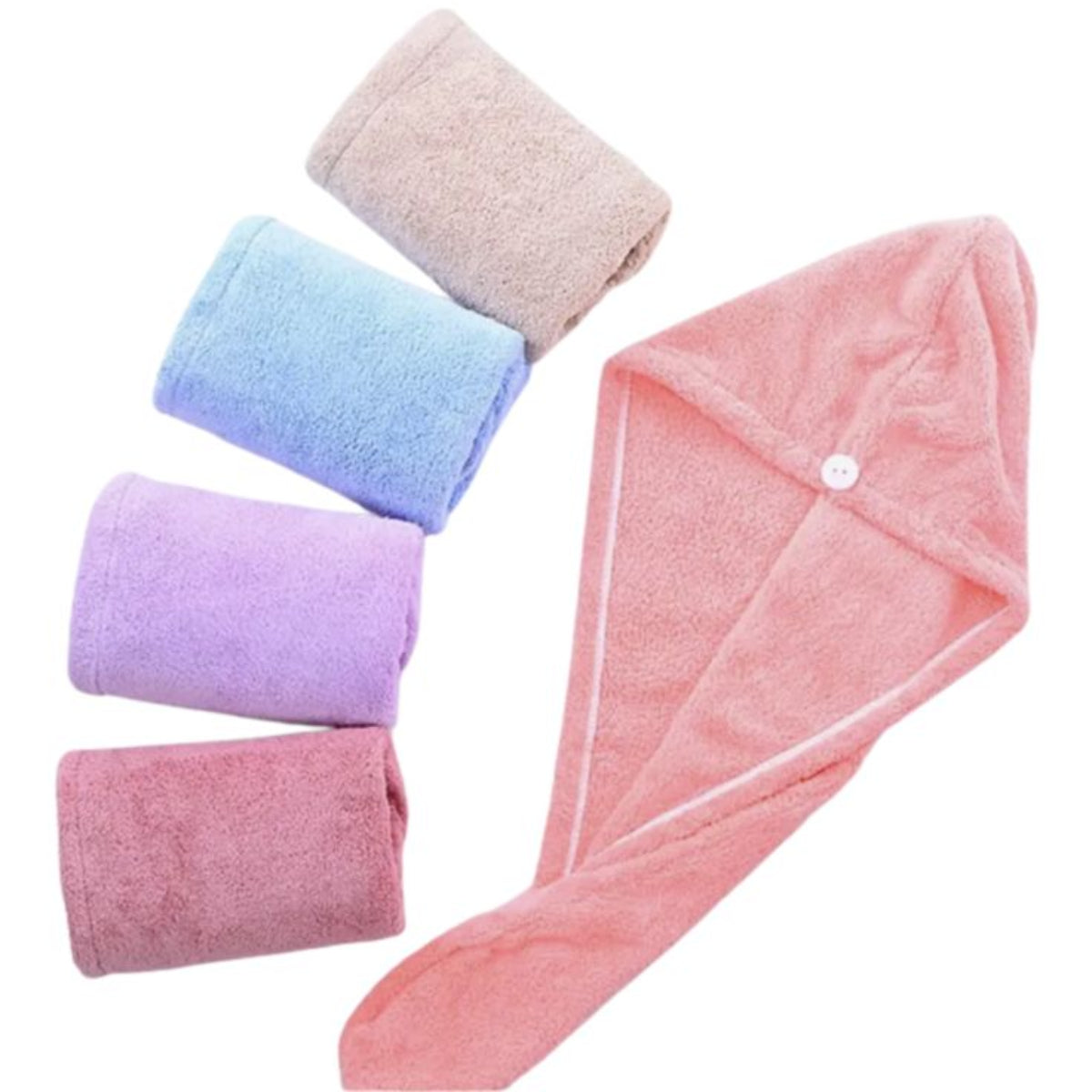 Súper Absorbente toalla que se emplea a modo de turbante y te permite secar el cabello de manera rápida después de la ducha. Absorbe el exceso de agua sin resecar o sacarle frizz al cabello.